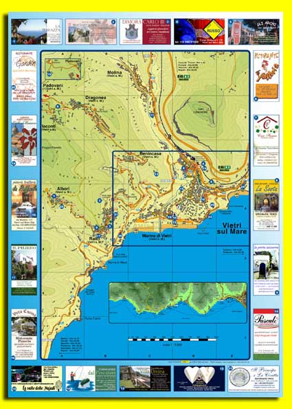 passeggiate La cart&guida propone una scheda sulla storia di Vietri e delle sue frazioni: Marina, Molina, Raito, Albori, Dragonea e Benincasa, descrive i monumenti più importanti ed i musei, e gli eventi più importanti. |